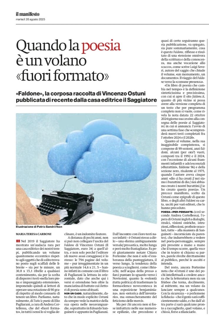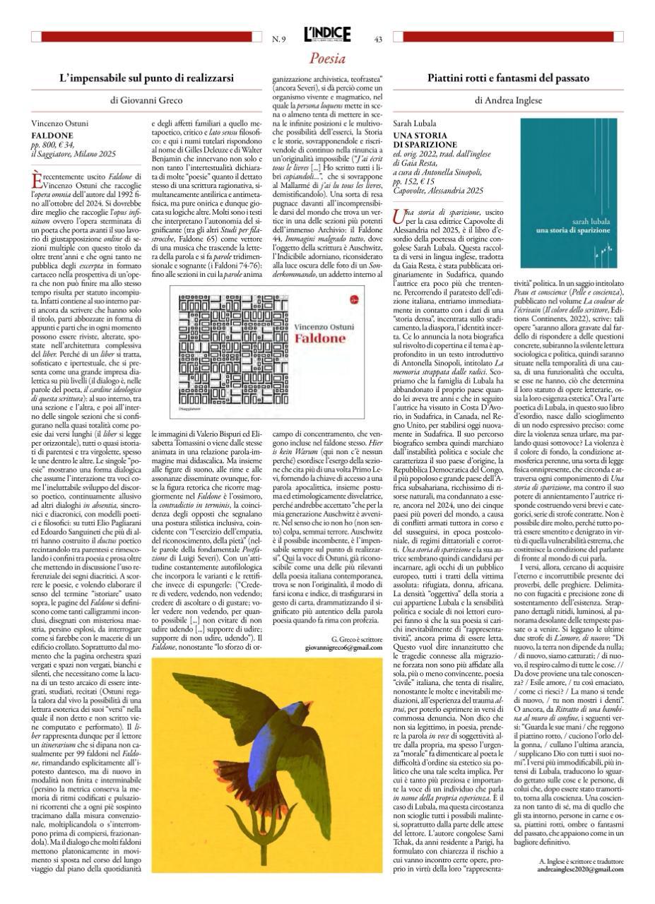 Luigi Severi, «un monumeto, un documento». Il viaggio del Faldone verso la «comune presenza», in Vincenzo Ostuni, Faldone, il Saggiatore, Milano 2025, pp. 765-794.